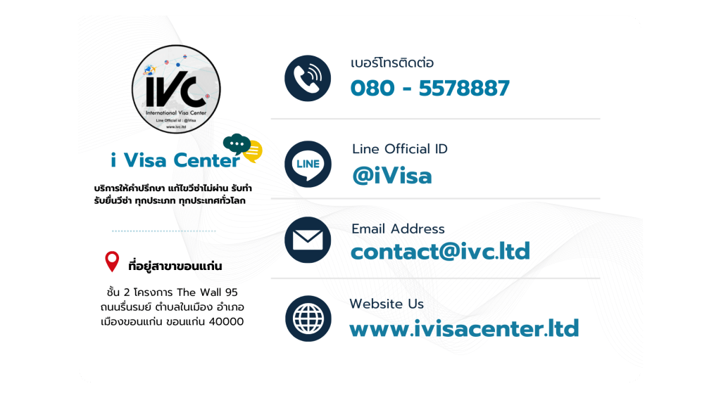 เลือกใช้บริการกับ i Visa Center วันนี้ เพื่อประสบการณ์การทำวีซ่าที่ง่าย สะดวก และมั่นใจได้ในทุกขั้นตอน ติดต่อขอรับคำปรึกษาด้านวีซ่าฟรีได้ที่สำนักงานของเราทั่วประเทศ หรือผ่านช่องทางออนไลน์